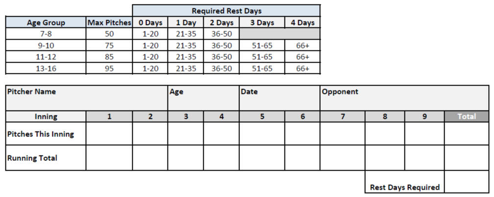 Download this printable sheet to track pitches inning by inning during a Little League game.Safe download • No signup required • 1-page printable PDFIncludes pitch count chart.
